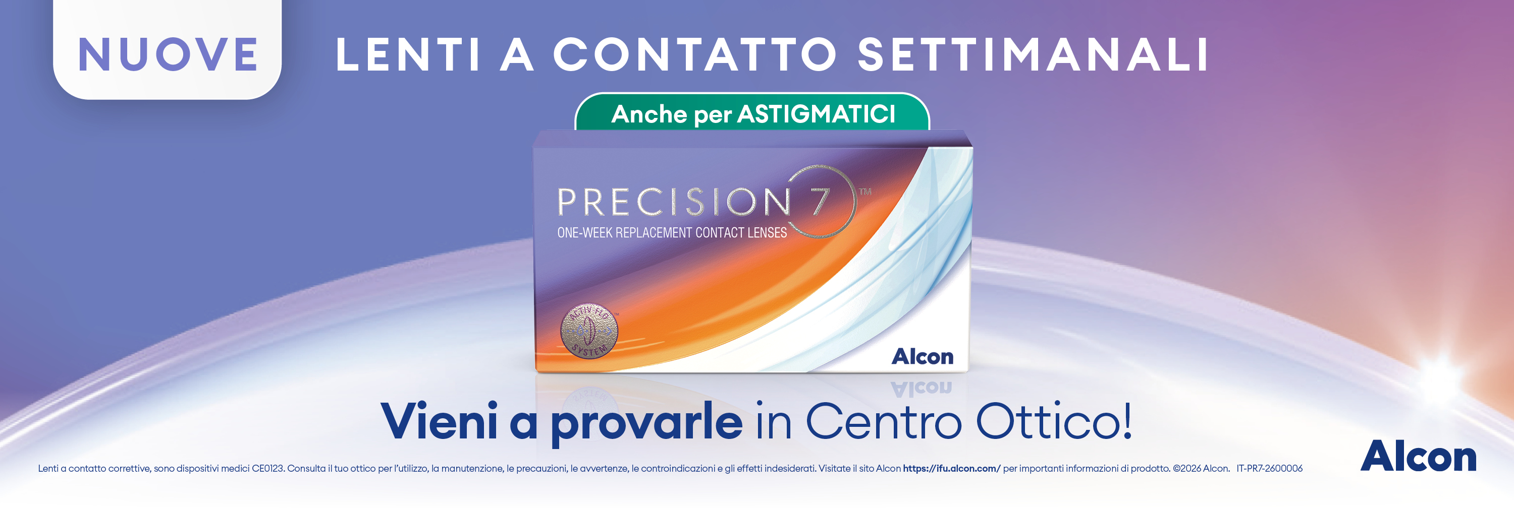 Vieni da VisionOttica a provare le nuove lenti a contatto settimanali PRECISION7™! Né giornaliere né mensili, ma perfette per 7 giorni: la soluzione pratica che si adatta al tuo ritmo di vita. Anche per astigmatici. Per maggiori informazioni, chiedi al tuo ottico di fiducia.